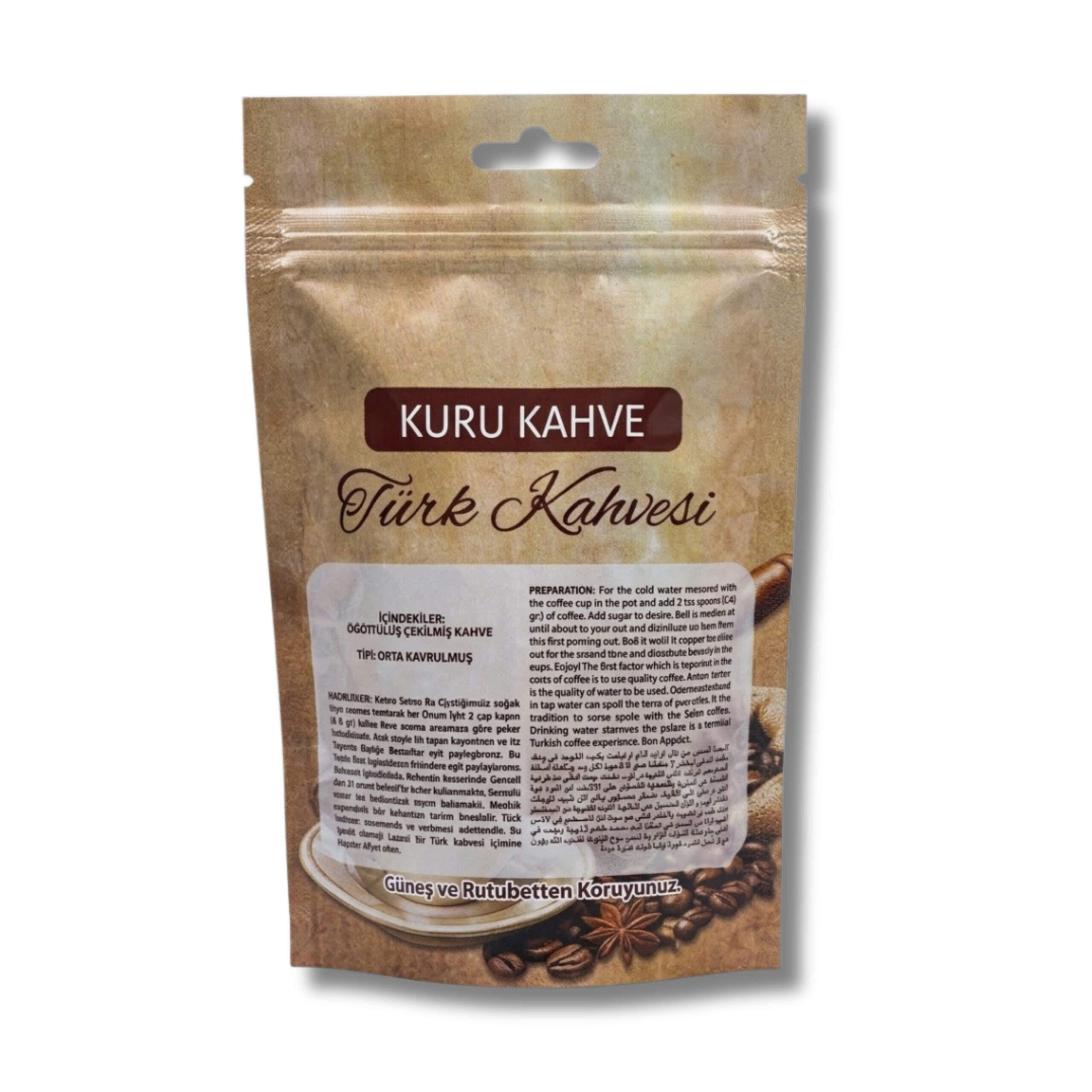 Türk kahvesi gibi köklü bir ürünü sunarken ambalajın da aynı özeni yansıtması önemlidir. Türk kahvesi temalı hazır tasarıma sahip doypack ambalajlarımız, geleneksel dokuyu modern ambalaj anlayışıyla bir araya getirir. Özenle hazırlanan tasarımı sayesinde ürünleriniz raflarda dikkat çekerken, markanıza estetik ve profesyonel bir görünüm kazandırır.
